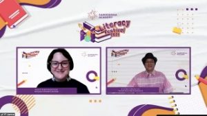 (dari kiri ke kanan) Adelina Holmes, Head of English Department Sampoerna Academy Schools dan Gol A Gong, Duta Baca Indonesia & Founder Rumah Dunia percaya bahwa literasi berkontribusi pada pengembangan keterampilan penting seperti kolaborasi, komunikasi, pemecahan masalah, dan pemikiran kritis pada anak.